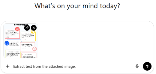 Another method for copying text from images is to use AI chatbots like ChatGPT. Upload your image to the AI chatbot and run the command ‘Extract text from the attached image’. You will get the text extracted from the image. Then copy the text either by clicking the copy icon or by selecting it manually.